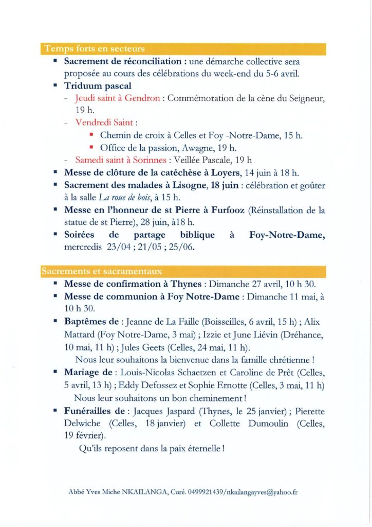 Secteur Notre Dame de Foy – Paques 2025